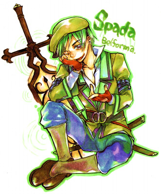 素早いイメージなので、イダテンを常時つけてる。HP少なくなるのも、それっぽいしな。武器にグミの達人ついてるのも、甲斐甲斐しくていいじゃない。大体、絆のため+傷つきやすいスパーダにあげてるけど。スパーダとはなんだか兄妹感がする。