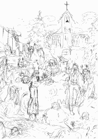クリスマス絵の下描き。