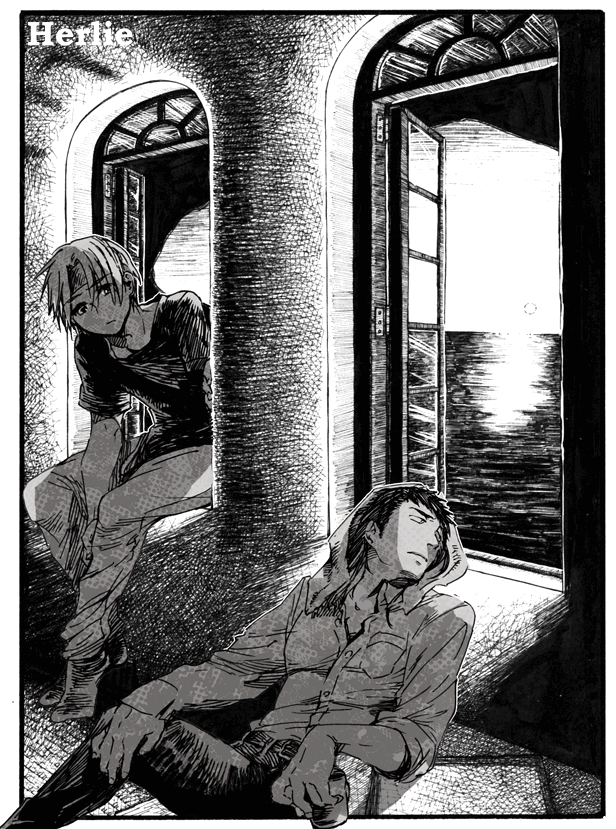 窓枠から降り、肩に触れる。引き締まった身体。シャツ越しでも、どんな手触りより彼の身体は心地よい。