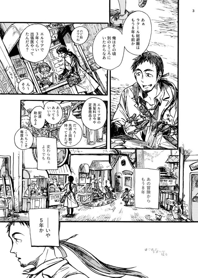 冒頭通り、冒険後に3年エルリア同棲後にさらに5年経った、8年後(27歳と35歳)の話。