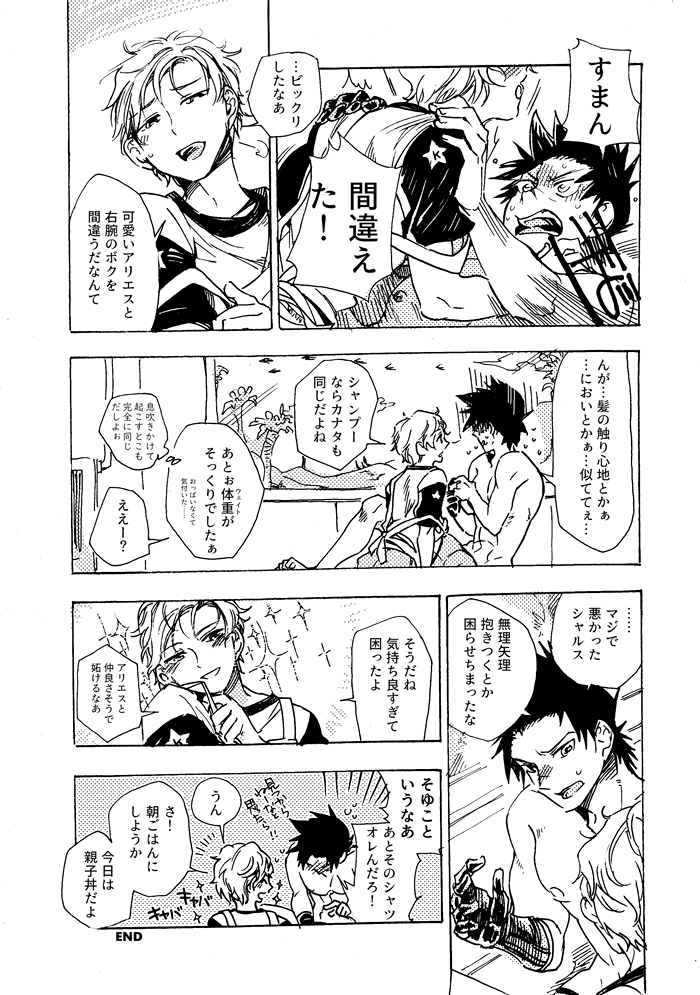 (シャルスが目隠しでもしてアリエスの裸見ないで全員合意でどっちも完全にカナタ相手のみならあり)(??????????)(さすがにシャルスのがアリエスより体力あると思うけどどうだろ)(合意って条件が一番無理だからな)
