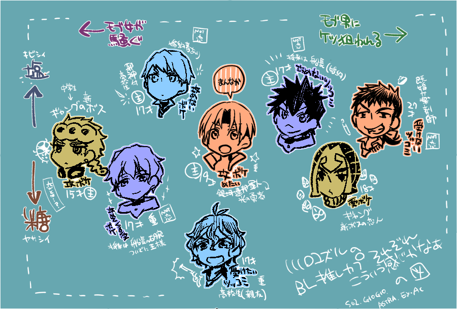 最初、攻と受とボケとツッコミだけ書いてたんだけど、いや…攻めてないし…と足した。