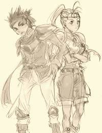 ルークは一応三原色揃ってるし、なんというか性格とか設定とか、主人公タイプだよねー。目つきの悪い&バンダナの巻き方でオーフェンを彷彿としちゃったのは内緒だっ。(魔道戦士だしルーク。まぁオーフェンは魔術戦士っつーか、相手の息の根止める格闘系だけど)それにしても私、目つきの悪い味方描くの苦手だなー。