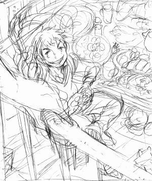 あおりの構図の方がよかったかなーって思ってラフる。