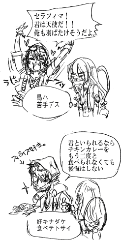 セラフィマは元々鳥嫌い(フリスも出会った当初から知ってるくらいの)だと思うけど、『天使』言われるのがウザくて、加速したんじゃないだろうかとか思ってみる。